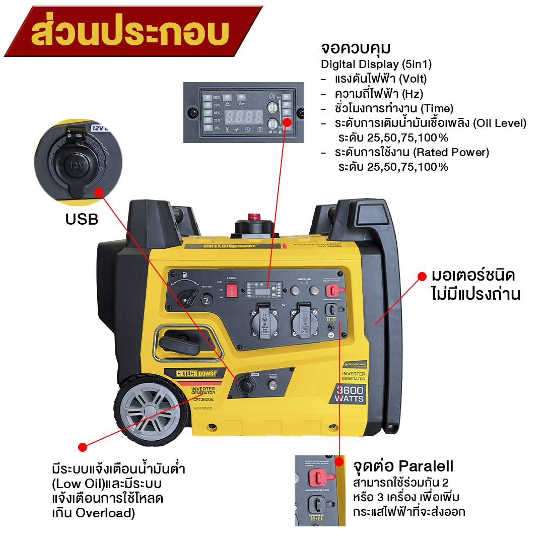 เครื่องกำเนิดไฟฟ้าเบนซินแบบพกพา รุ่น : CRT3600iE (หน้าจอ 5 in 1)
